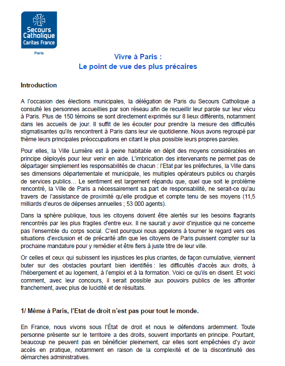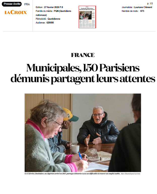 À l’approche des élections municipales des 15 et 22 mars, le Secours Catholique de Paris appelle à faire entendre une voix trop souvent absente du débat public : celle des personnes en situation de pauvreté et d’exclusion.
