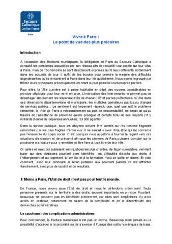 Notre plaidoyer : Vivre à Paris : Le point de vue des plus précaires